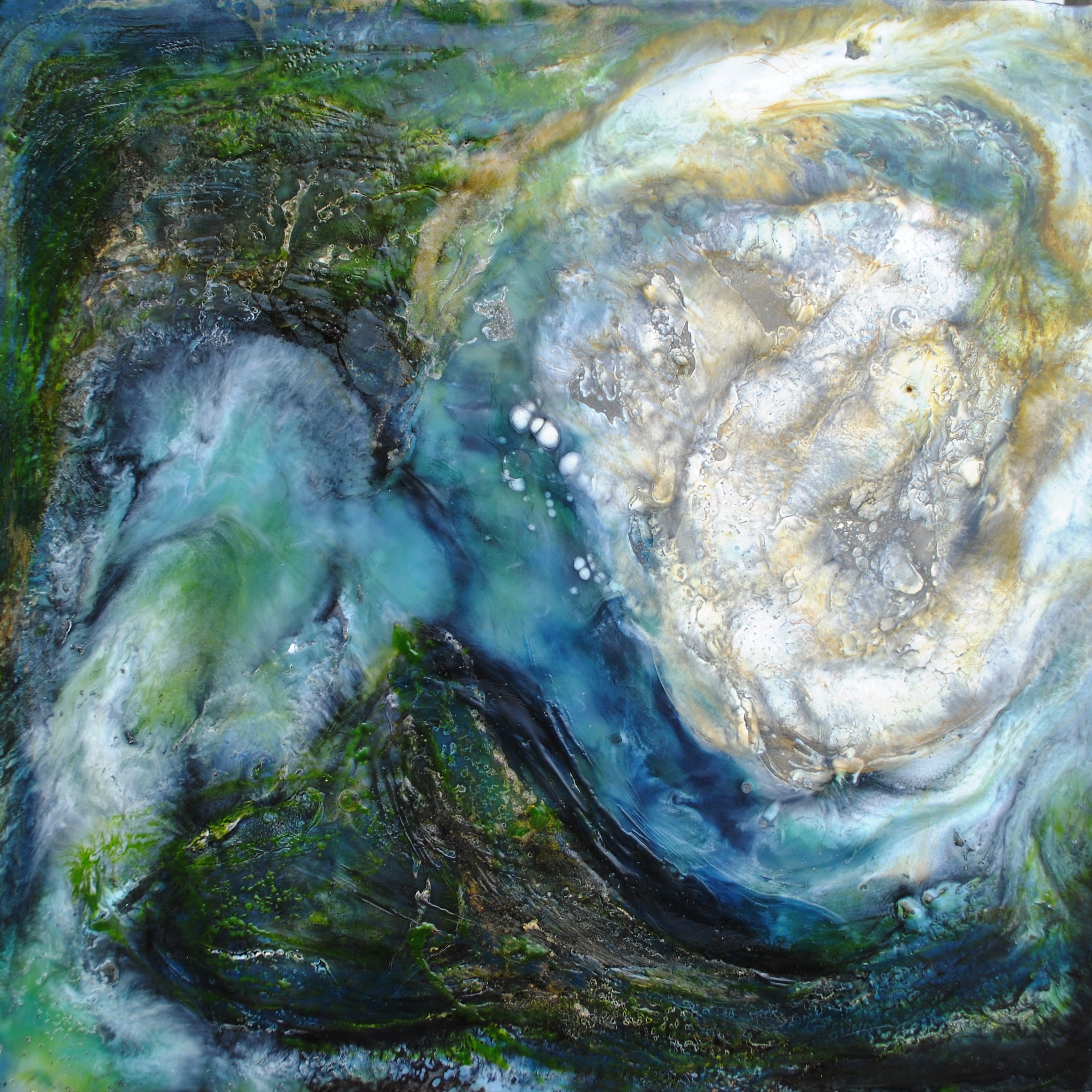 This encaustic was a direct response the waterfall which I have the pleasure to visit on a regular basis, only 5 minutes from my home…