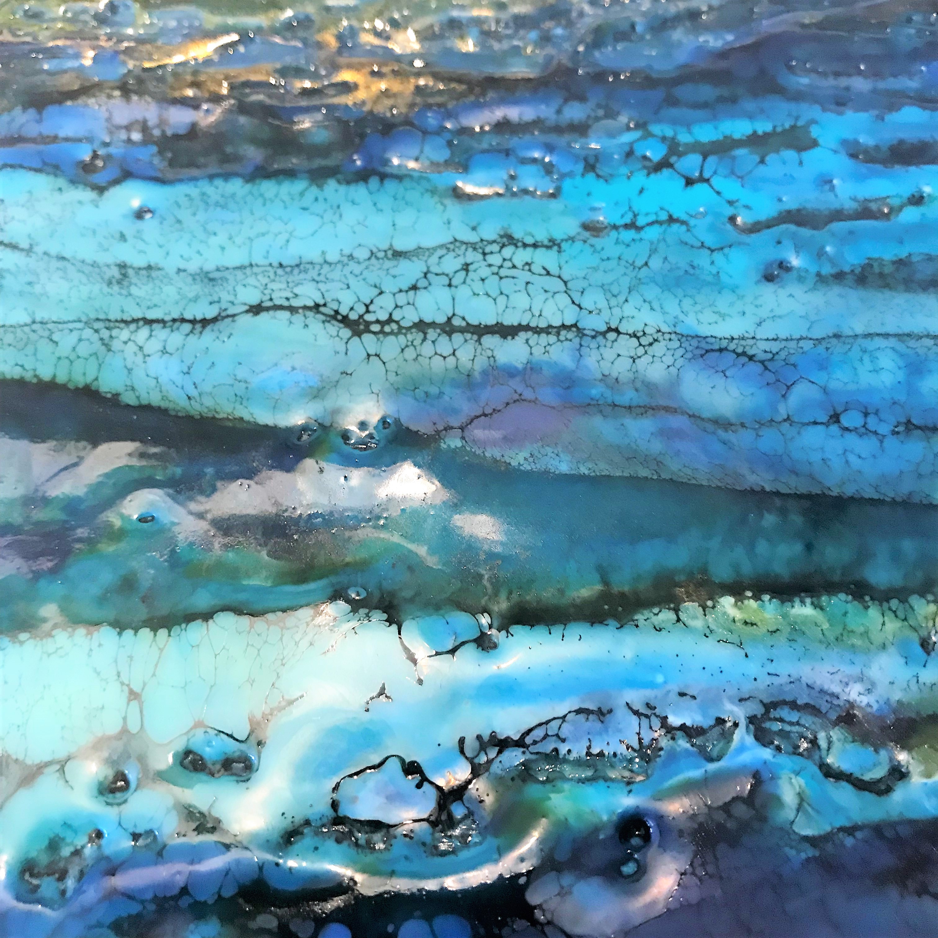 I strive to conjure up a sense of liminality in my paintings, where there is no separation between Land, Sea and sky, in order to ignite the imagination of the viewer while I reflect on the aesthetic power of light enhanced through layers of molten pigmented wax.