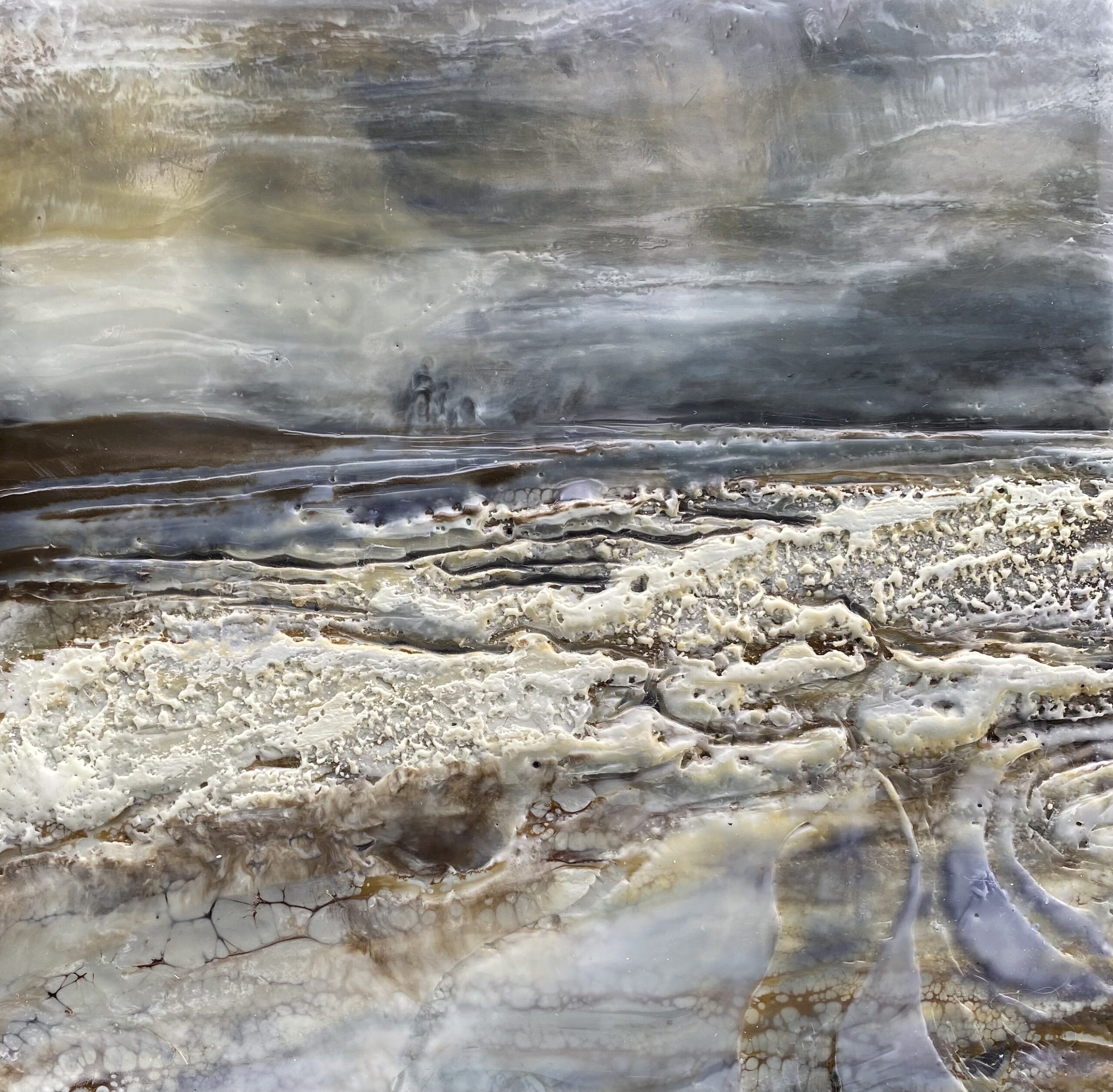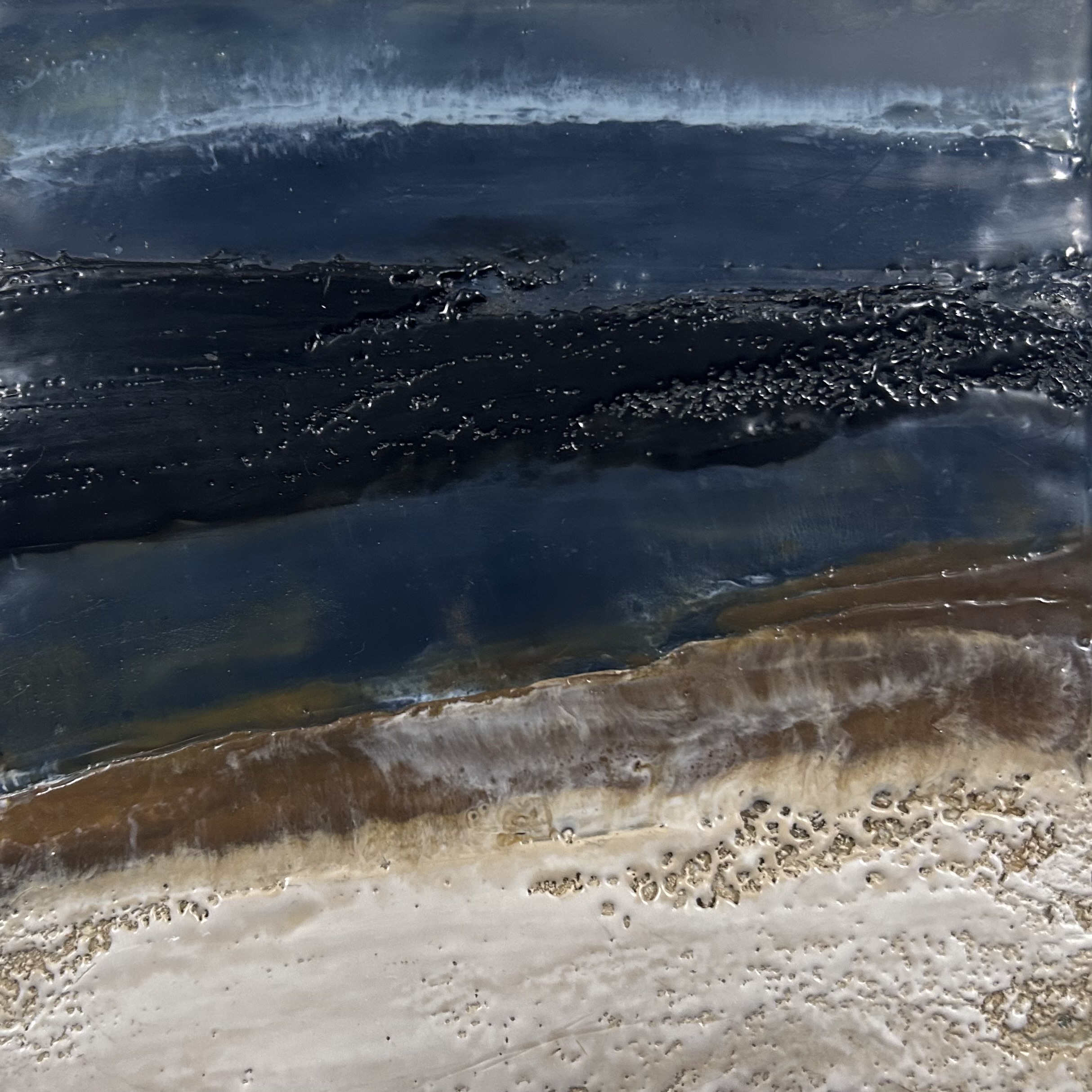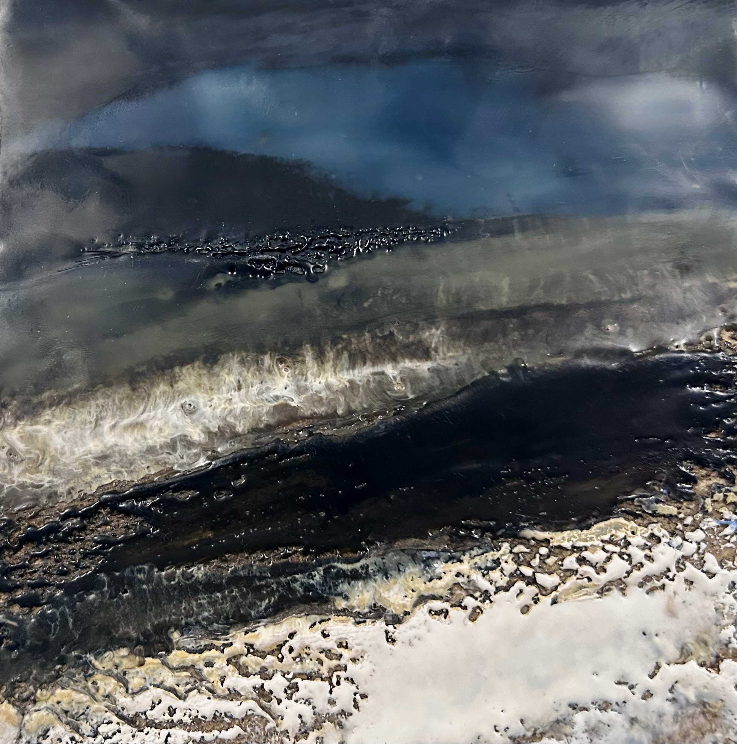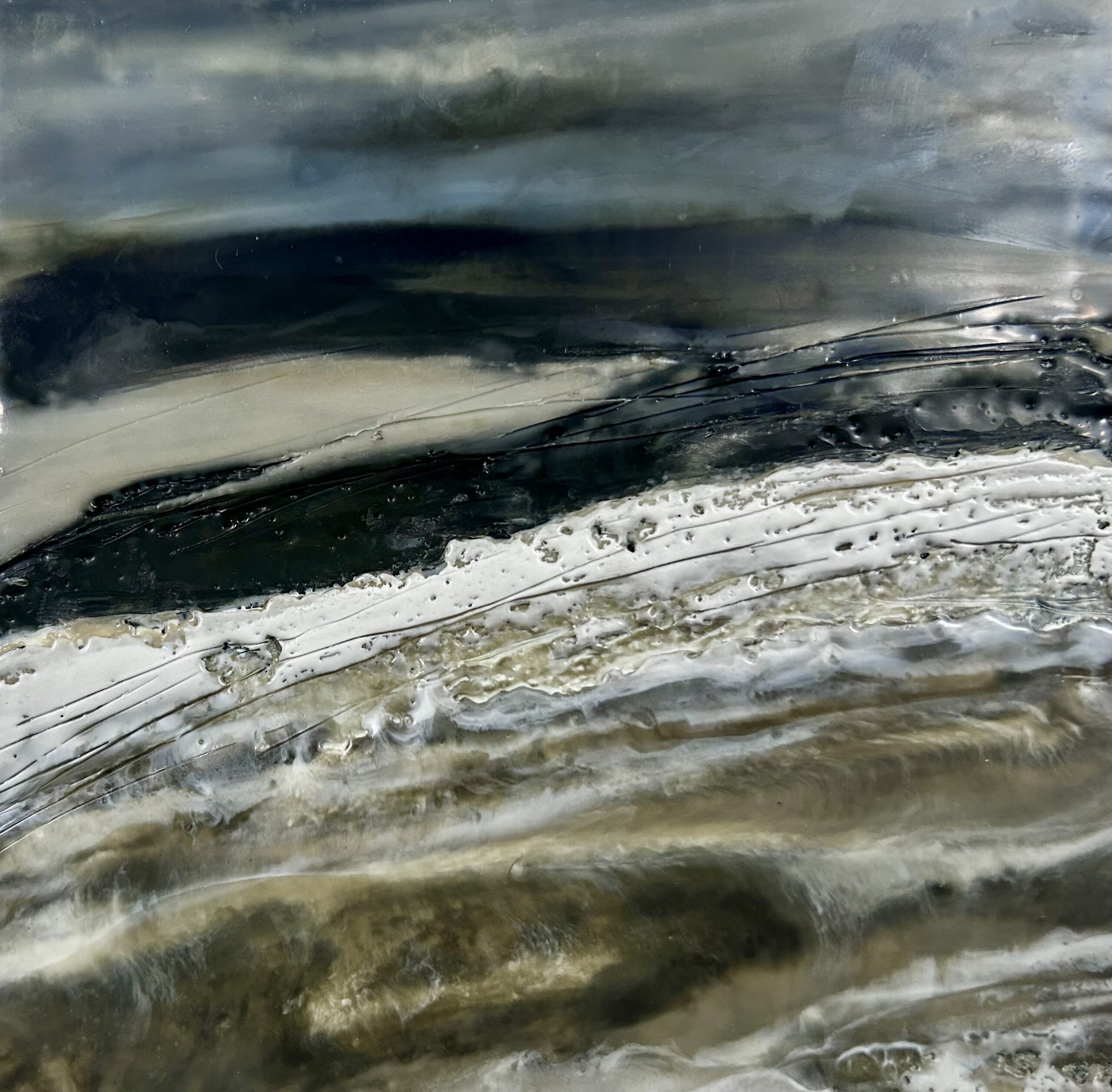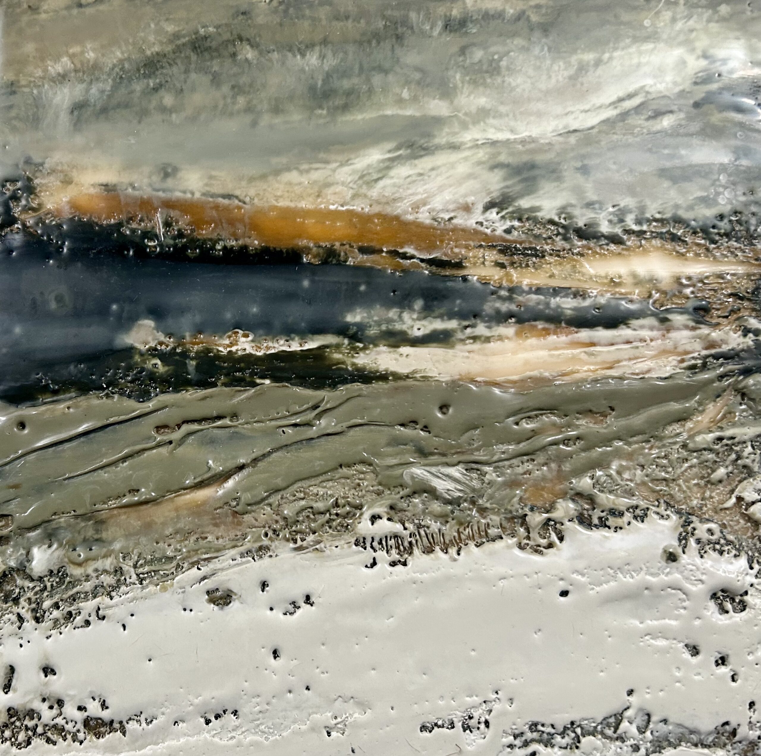In this new collection, I explore the storytelling potential of texture through encaustic painting, where cracks, ridges, and smooth planes form a visual language. Each surface becomes a map shaped by the unpredictable nature of molten wax,. The interplay of texture and form mirrors the way landscapes tell stories, revealing their histories through every fracture, erosion, and contour.